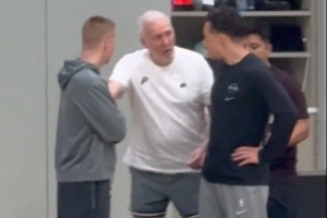 心系马刺!波波维奇步履蹒跚重返马刺训练场 现场调教接班人米奇