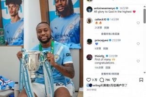 赛后塞梅尼奥也在社媒晒出与冠军奖杯合影,这也是他在曼城夺得的首个冠军,他配文写道:“所有荣耀归于上帝!”