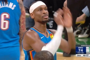 体育资讯3月26日讯 NBA常规赛,雷霆与凯尔特人的比赛正在进行。