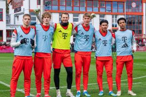 体育资讯4月2日讯 本周,拜仁主帅孔帕尼征召了多达12名青训营小将参加训练,队长诺伊尔在社媒上发布了一张和5名小将合影的照片。《图片报》对这5名小将进行了介绍。