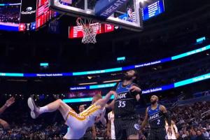 在4月2日老鹰对阵魔术的常规赛中,兰代尔被比塔泽在防守中从身后一把拉下,导致其膝盖着地。