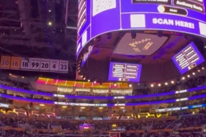 当现场DJ播报阿德巴约得到83分时,湖人主场球迷发出阵阵嘘声。